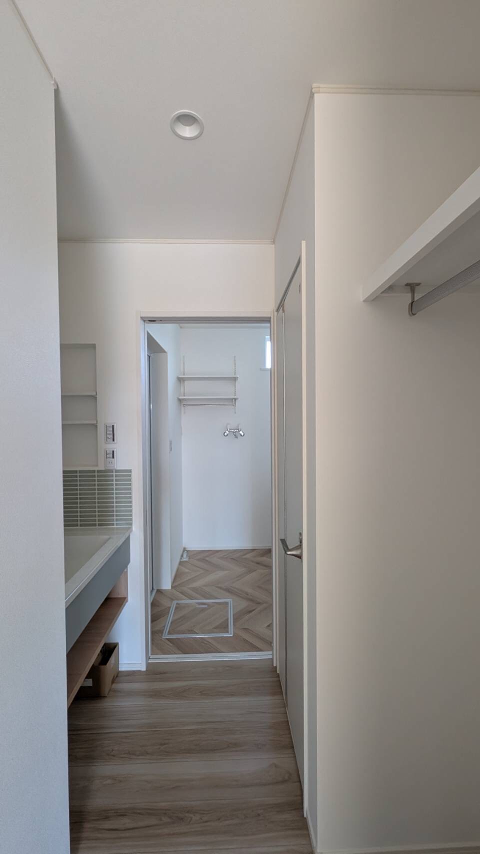 玄関からコート掛け、手洗い、洗面と